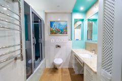 В ванной комнате остаются стиральная машина (LG), бойлер, полотенцесушители электрические. В санузлах установлены теплые полы.