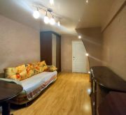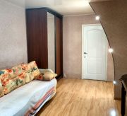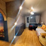 Сделан хороший, аккуратный ремонт: в жилых комнатах - ламинат, в коридоре и на кухне - плитка, окна заменены на современные стеклопакеты, потолки - натяжные. Санузел раздельный, полностью облицован кафелем. Сантехника не новейшая, но в полном порядке и без намёка на "советскую археологию".
