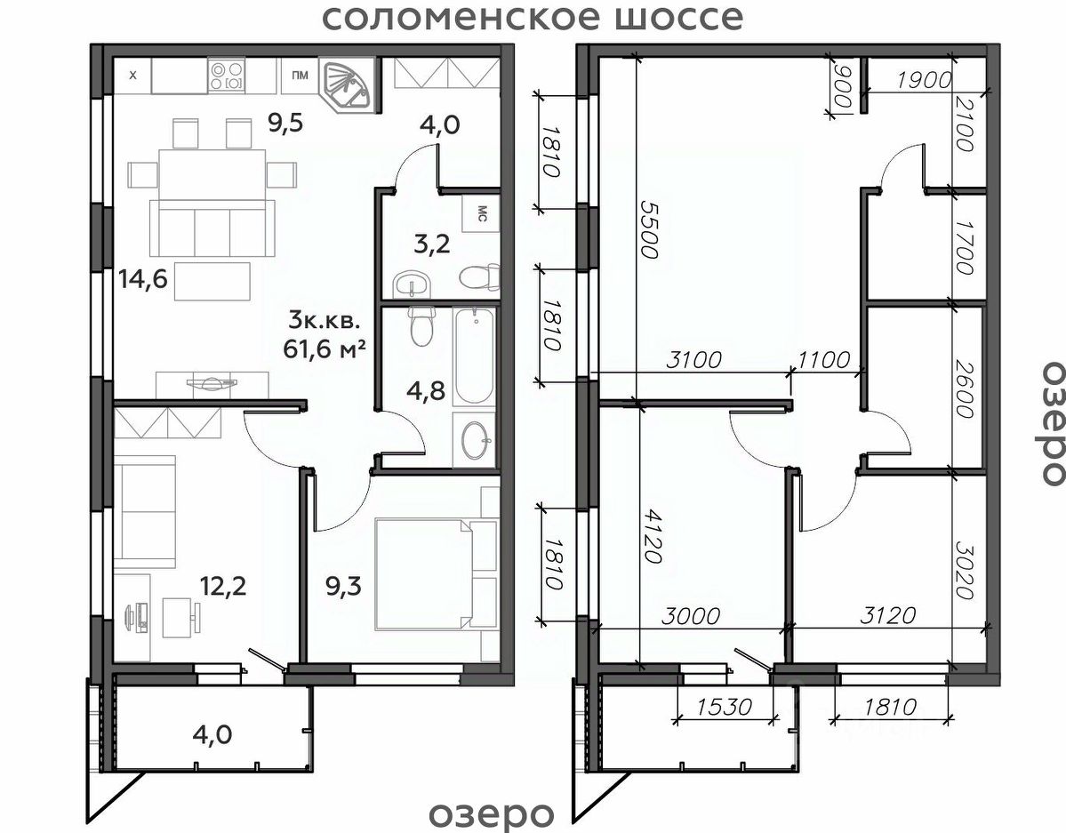 Продаётся 3-комнатная квартира в строящемся доме (Дом 9), срок сдачи: IV-кв. 2027, общей площадью 61.6 кв.м., на 3 этаже.