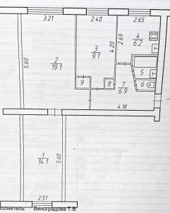 -Жилая площадь 42,3 кв.м. комнаты (19 кв.м, 14 кв.м., 9 кв.м.)