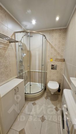 1й сан узел - 3 кв.м., отделка - плитка, теплый пол, подвесной туалет, душевая кабинка, ниша под стиральную машину, умывальник, шкафчик.