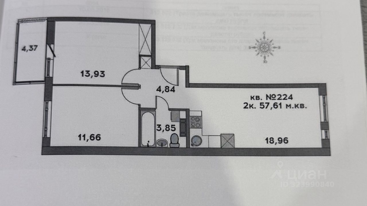 57,61 м² — продуманная планировка и всё для комфортной жизни: