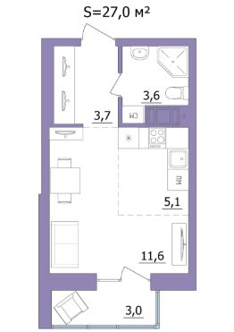 Продаётся студия в строящемся доме (Дом 3), срок сдачи: II-кв. 2026, общей площадью 27 кв.м., на 6 этаже.