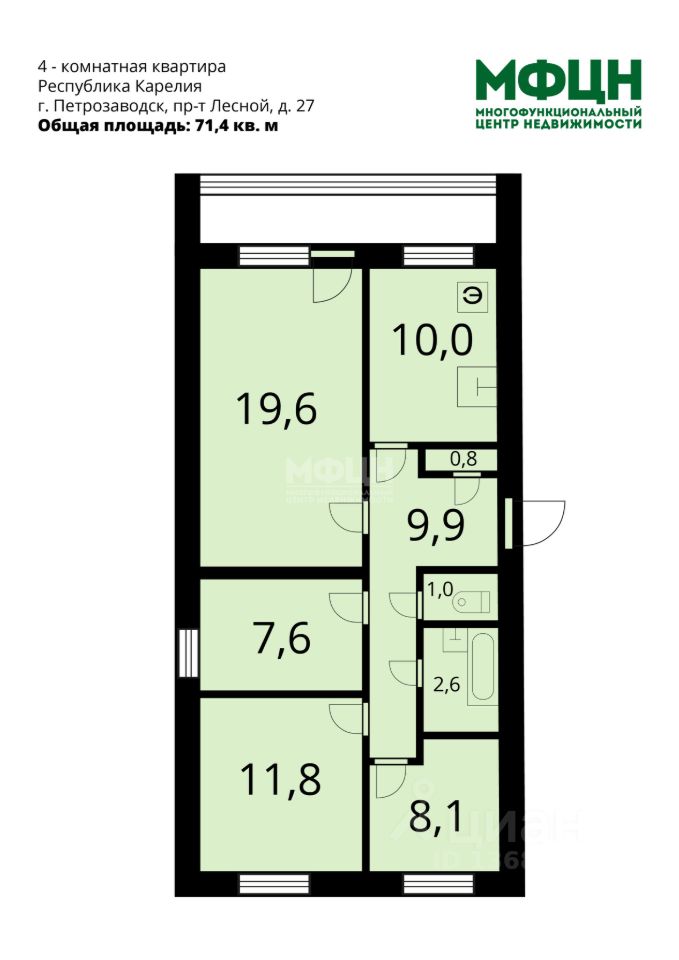 К покупке предлагается 4 - комнатная квартира, расположенная на 2-м этаже 9 - этажного дома, находящаяся по адресу: город Петрозаводск, Лесной проспект, дом 27.