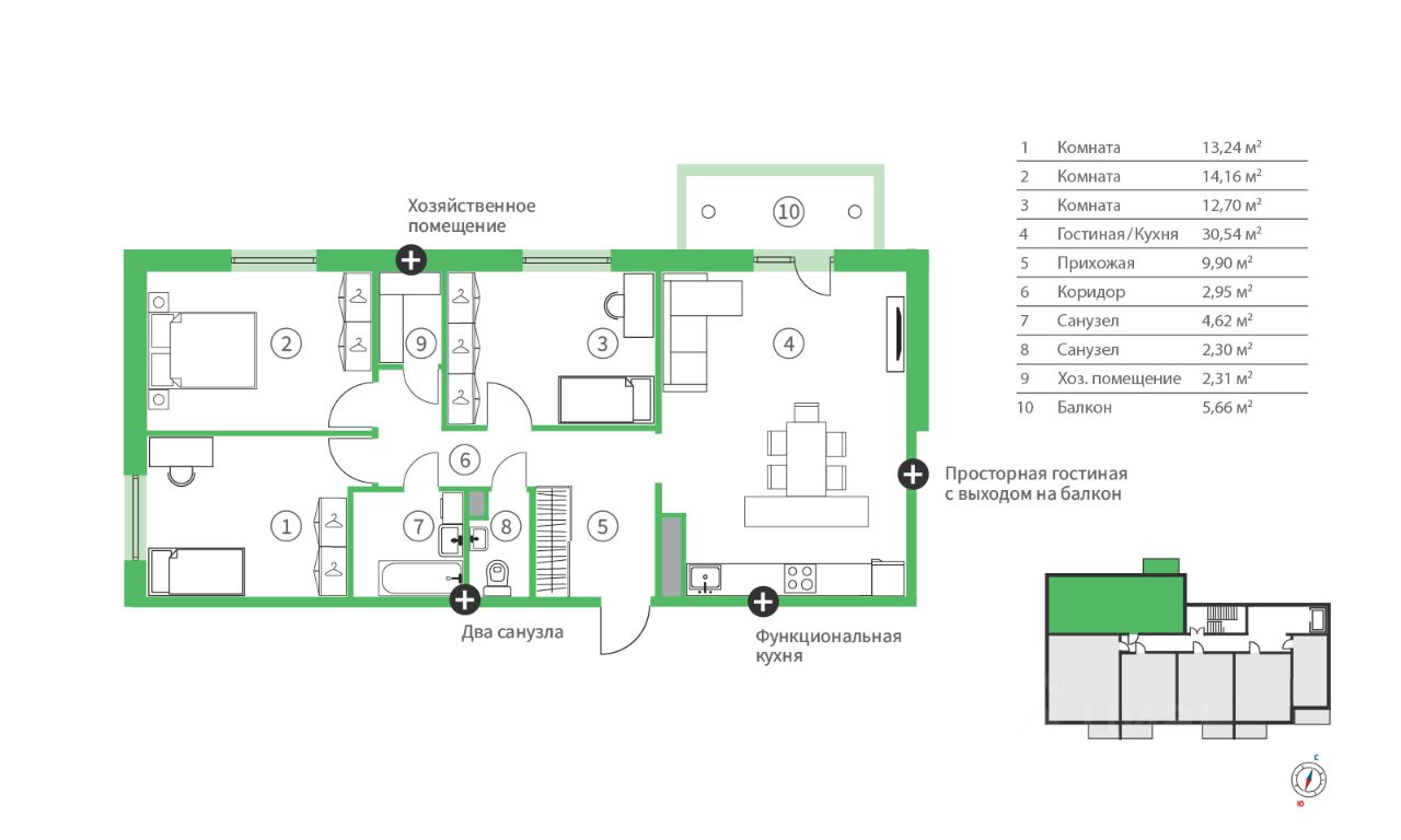 Продаётся 3-комнатная квартира в строящемся доме (5.5), срок сдачи: IV-кв. 2026, общей площадью 98.38 кв.м., на 7 этаже. Новый жилой комплекс "Сампо" от застройщика "Стройинвест КСМ" органично сочетает городской комфорт и очарование жизни загородом. Здесь каждый сможет найти то, что ему необходимо: