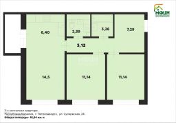 - комнаты: 11.4, 11.4, 14.5 кв. м;