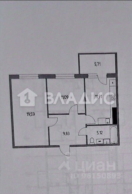 - Площадь квартиры 58,1 кв.м + лоджия 5,71 кв.м.
