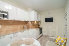 оснащена современным кухонным гарнитуром, выполненным по индивидуальному заказу , холодильник, варочная панель, духовой шкаф, посудомоечная машина.