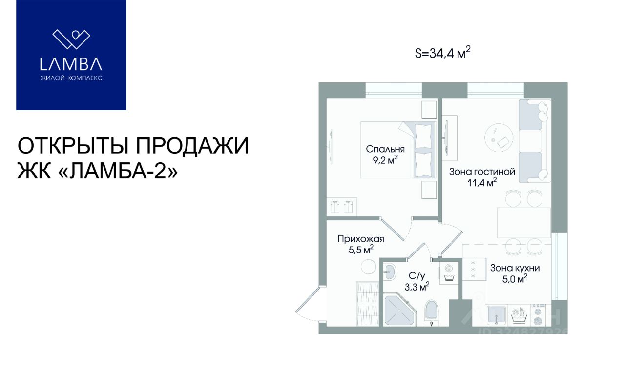 34,4 м²