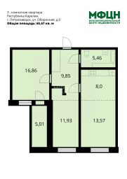 - комнаты: 16,86 кв. м, 11,93 кв. м и 13,57 кв. м;