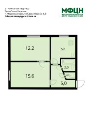 К покупке предлагается 2 - комнатная квартира, расположенная на 5 - м этаже 5 - этажного дома, находящаяся по адресу: Республика Карелия, город Медвежьегорск, ул.Карла Маркса, дом 8.