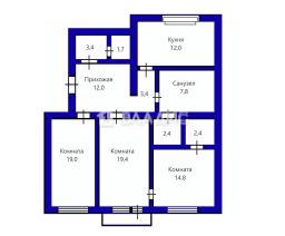 - Площади комнат: 19,0 + 19,4 + 14,8 кв. м.