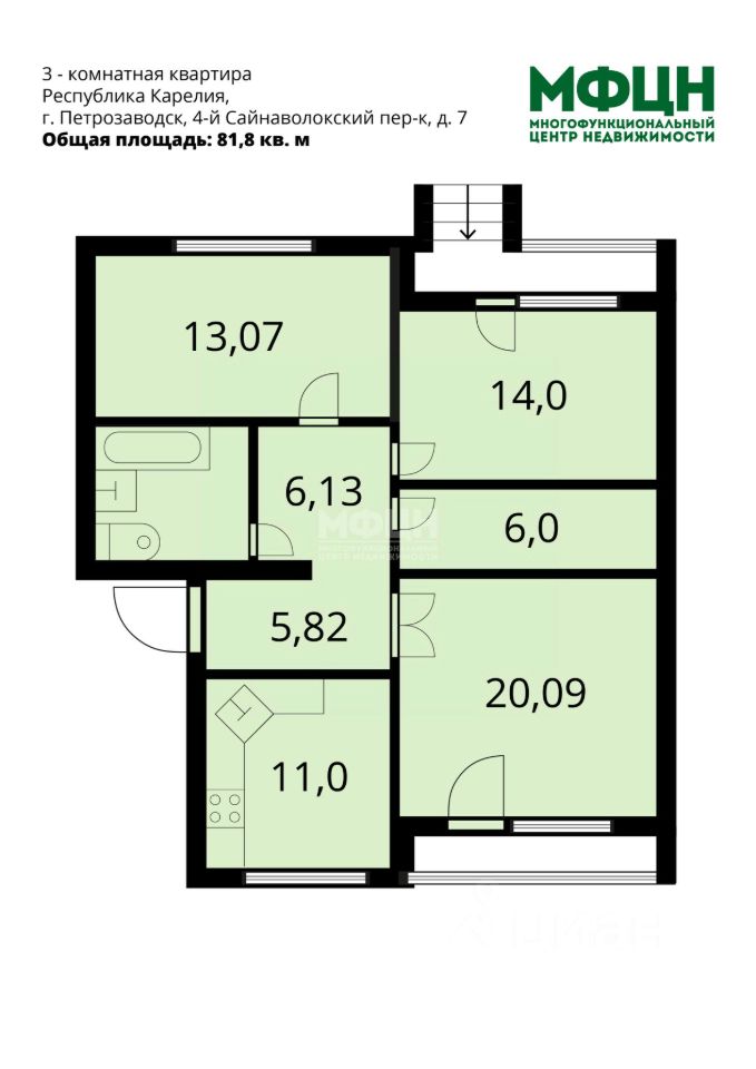 К покупке предлагается 3 - комнатная квартира, расположенная на 1-м этаже 3 - этажного дома, находящаяся по адресу: г. Петрозаводск, 4-й Сайнаволокский переулок, дом 7.