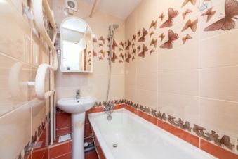 Удобная ванная комната (отделка кафель скрытая подводка сантехники с доступом к обслуживаемым узлам, зеркало, душевая стойка).