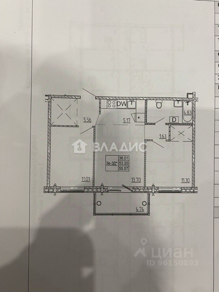 Общая площадь квартиры 53.2 кв.м