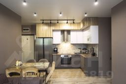 Оснащена современным кухонным гарнитуром, выполненным по индивидуальному заказу с использованием качественных материалов, холодильник, варочная панель, духовой шкаф. Мебель, техника остаётся с согласования с собственников
