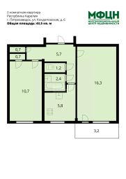 - комнаты: 16,3 и 10,7 кв. м;