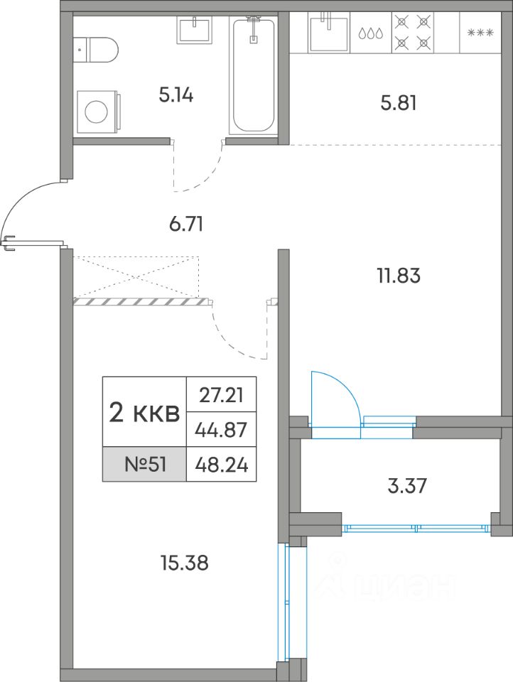 Продаётся 2-комнатная квартира в строящемся доме (Дом 1), срок сдачи: I-кв. 2028, общей площадью 48.24 кв.м., на 5 этаже. Новый жилой комплекс от группы компаний "Охта Групп Карелия" расположен по адресу: г. Петрозаводск, по ул. Екатерининская.
