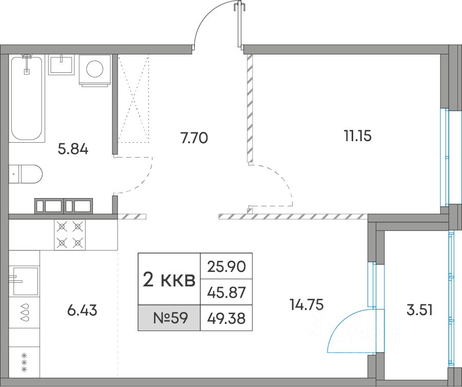 Общая площадь49,38 м²