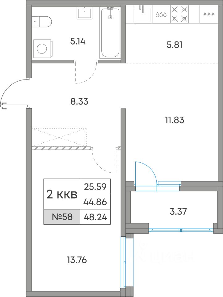 Общая площадь48,24 м²