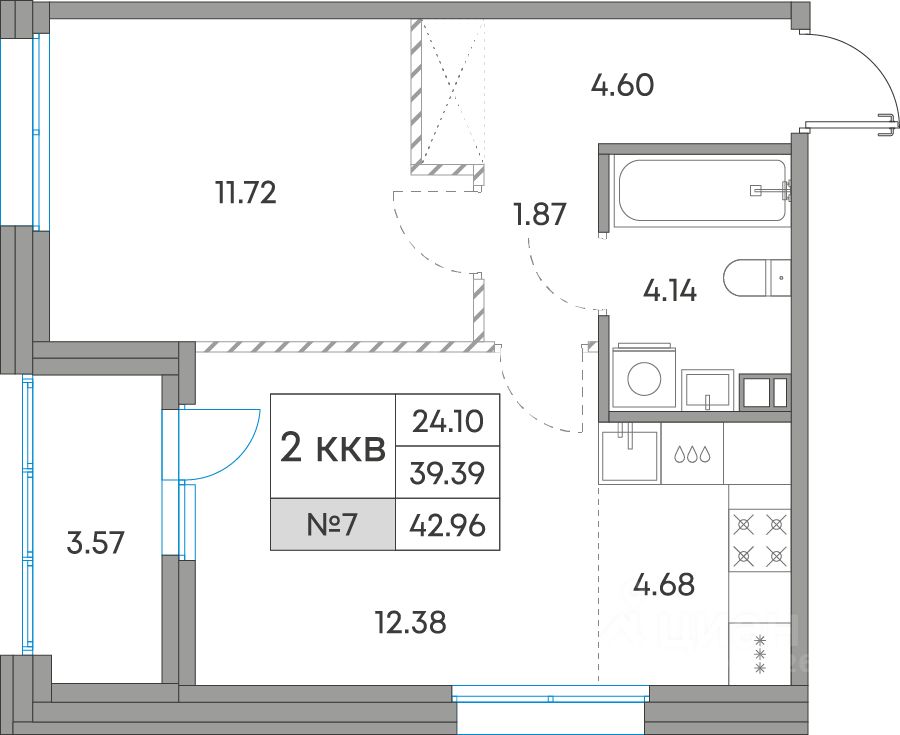 42,96 м²
