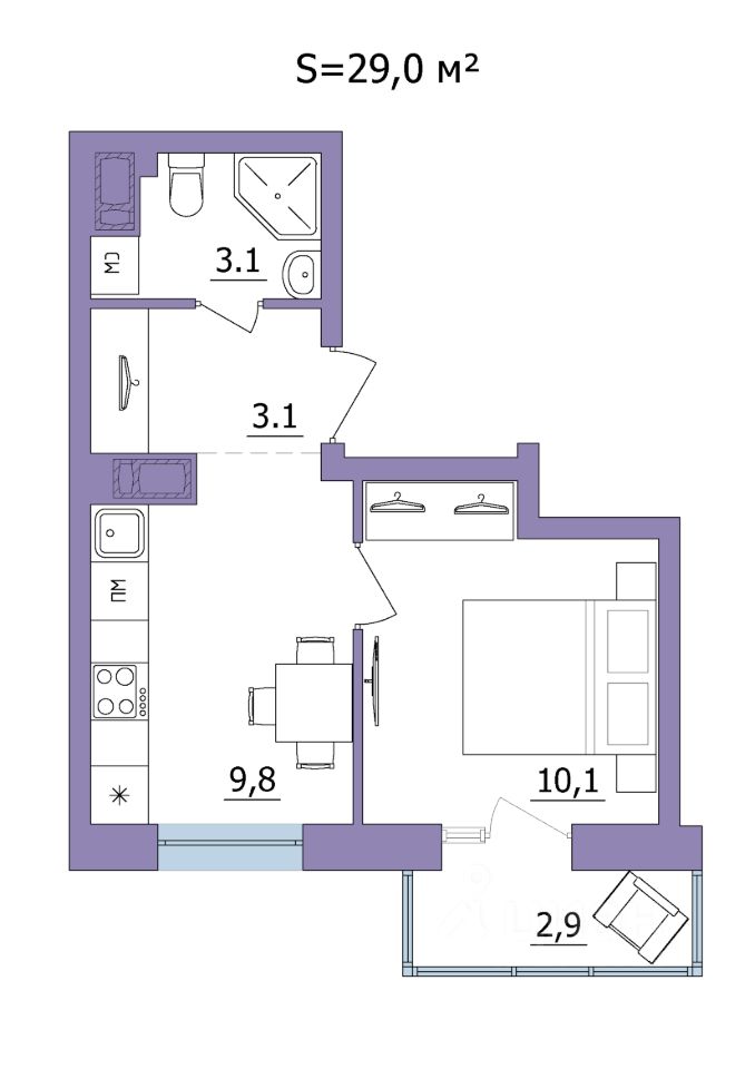 Продаётся 1-комнатная квартира в строящемся доме (Дом 2), срок сдачи: II-кв. 2028, общей площадью 29 кв.м., на 11 этаже.