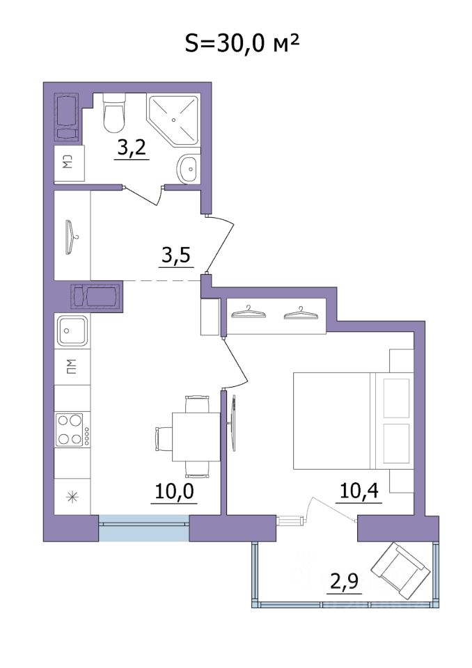 Продаётся 1-комнатная квартира в строящемся доме (Дом 2), срок сдачи: II-кв. 2028, общей площадью 30 кв.м., на 16 этаже.