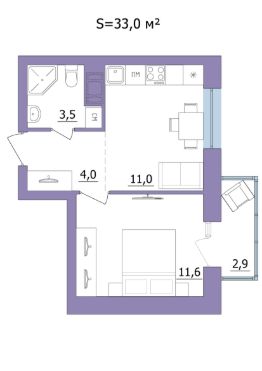 Продаётся 1-комнатная квартира в строящемся доме (Дом 2), срок сдачи: II-кв. 2028, общей площадью 33 кв.м., на 4 этаже.