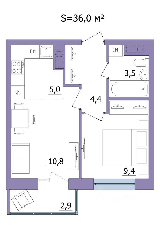 Продаётся 2-комнатная квартира в строящемся доме (Дом 2), срок сдачи: II-кв. 2028, общей площадью 36 кв.м., на 8 этаже.