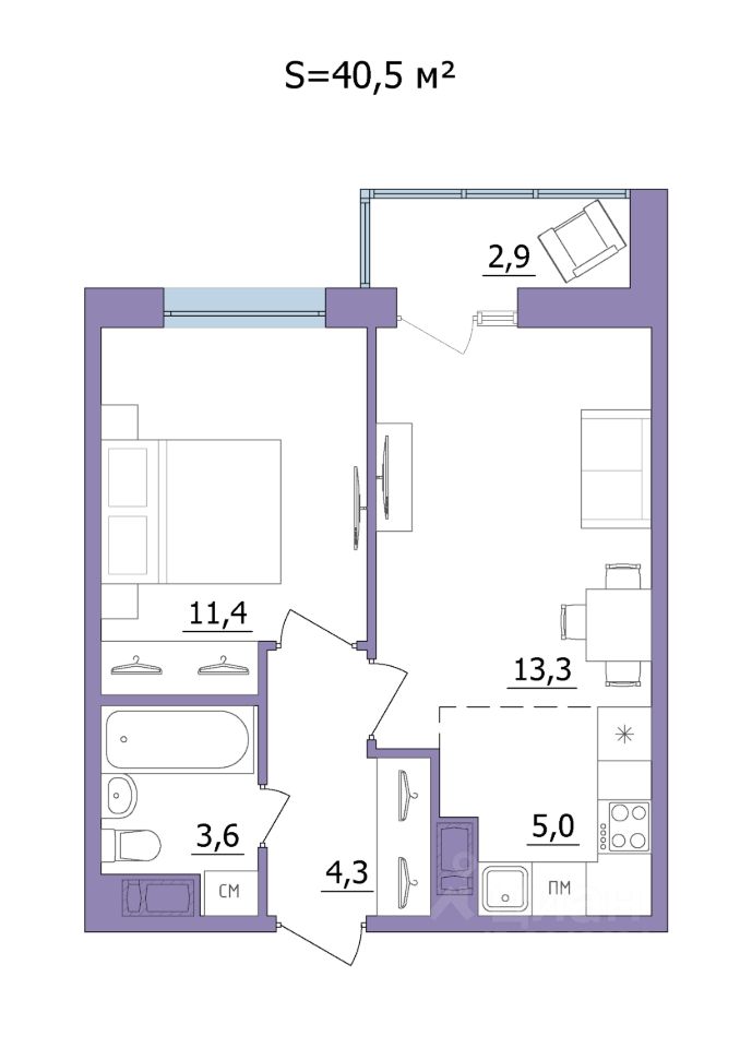 Продаётся 2-комнатная квартира в строящемся доме (Дом 2), срок сдачи: II-кв. 2028, общей площадью 40.5 кв.м., на 22 этаже.