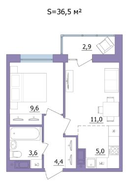 Продаётся 2-комнатная квартира в строящемся доме (Дом 3), срок сдачи: II-кв. 2026, общей площадью 36.5 кв.м., на 17 этаже.
