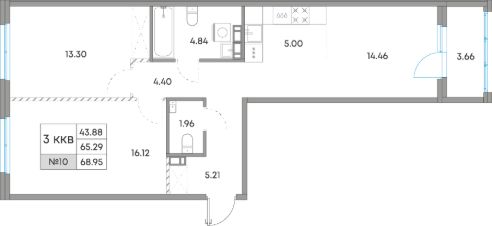Общая площадь68,95 м²