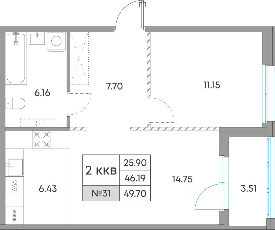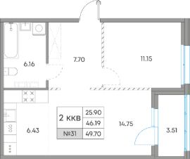 Жилая площадь25,9 м²