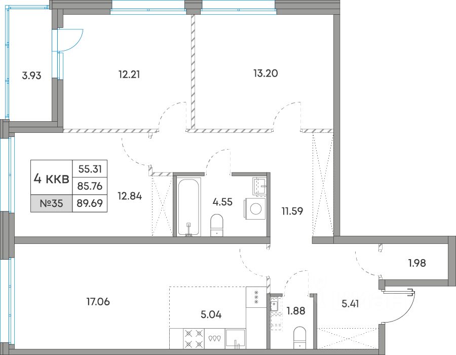 Общая площадь89,69 м²