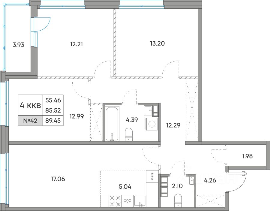 Продается 4-комн. квартира, 89,45 м²