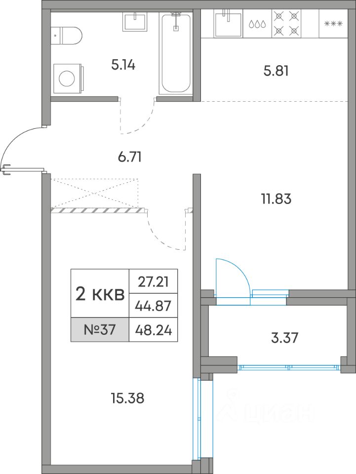 Общая площадь48,24 м²