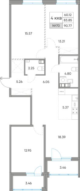 Продается 4-комн. квартира, 90,77 м²