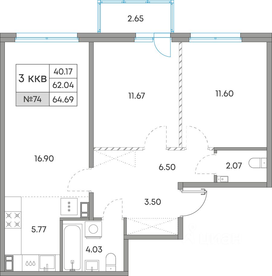 Общая площадь64,69 м²
