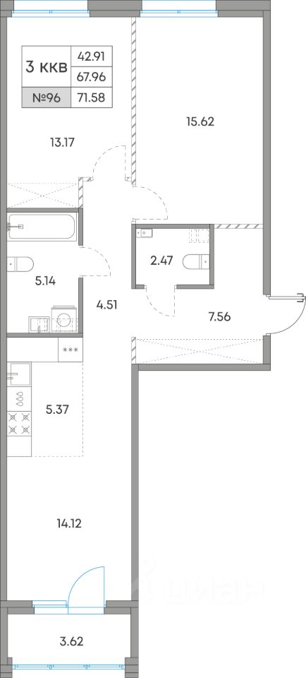Общая площадь71,58 м²
