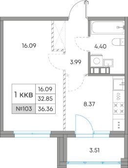 Общая площадь36,36 м²