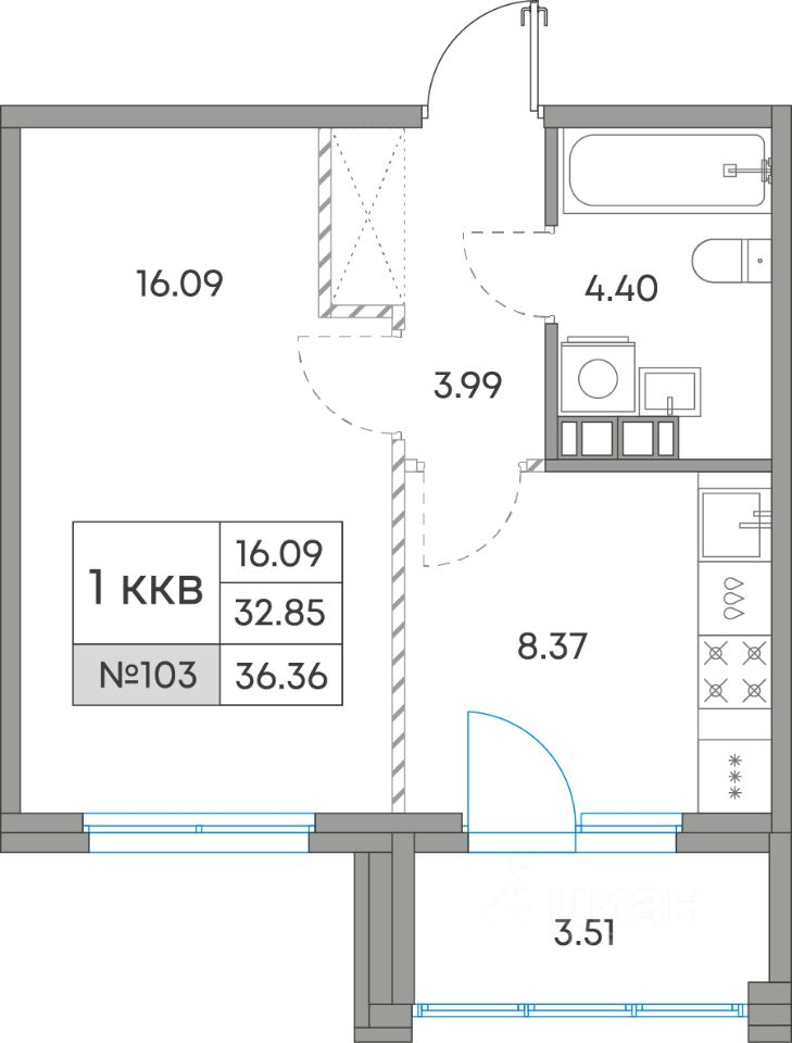 Общая площадь36,36 м²