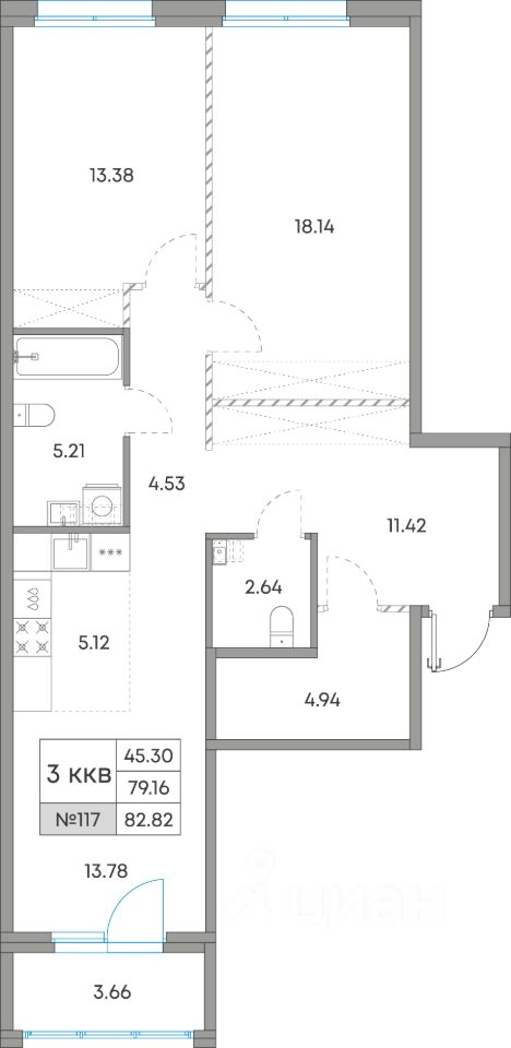 Общая площадь82,82 м²