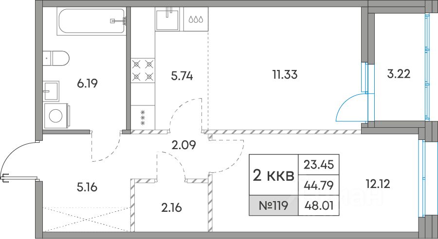 Общая площадь48,01 м²
