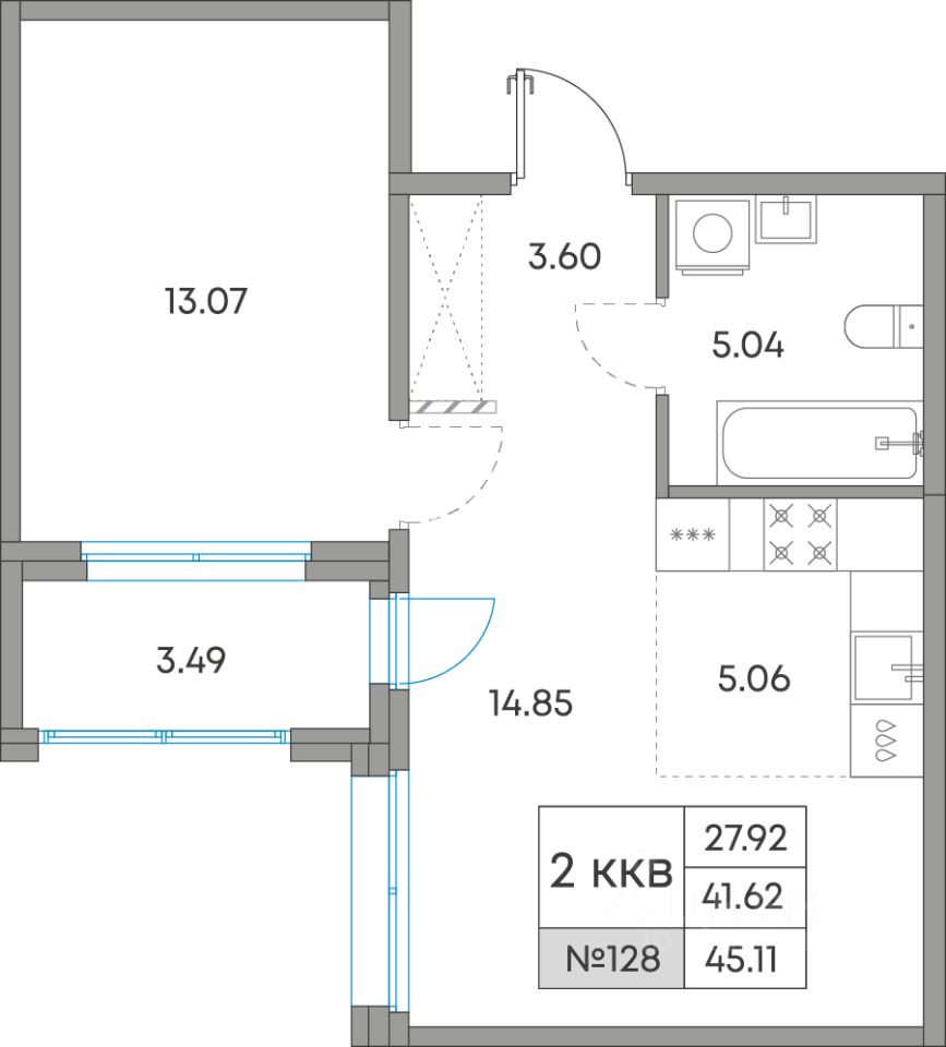 Общая площадь45,11 м²