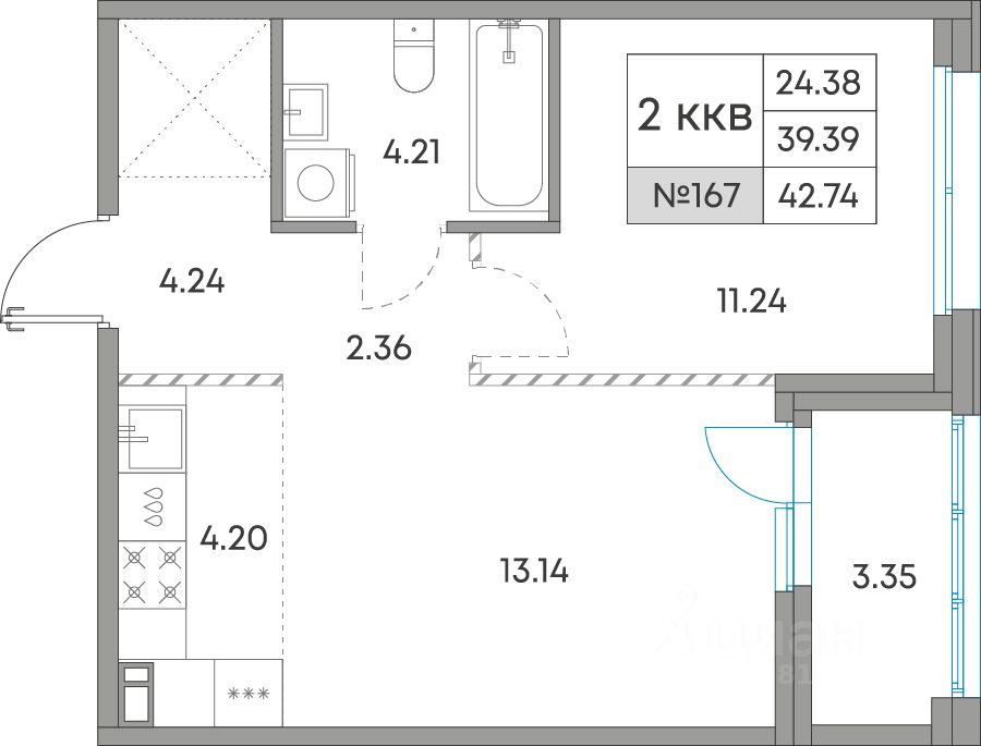 Площадь кухни4,2 м²