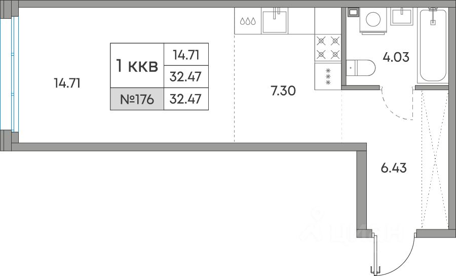 Общая площадь32,47 м²