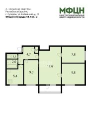 - комнаты: 17,6; 9,8; 9,0 и 7,8 кв. м;