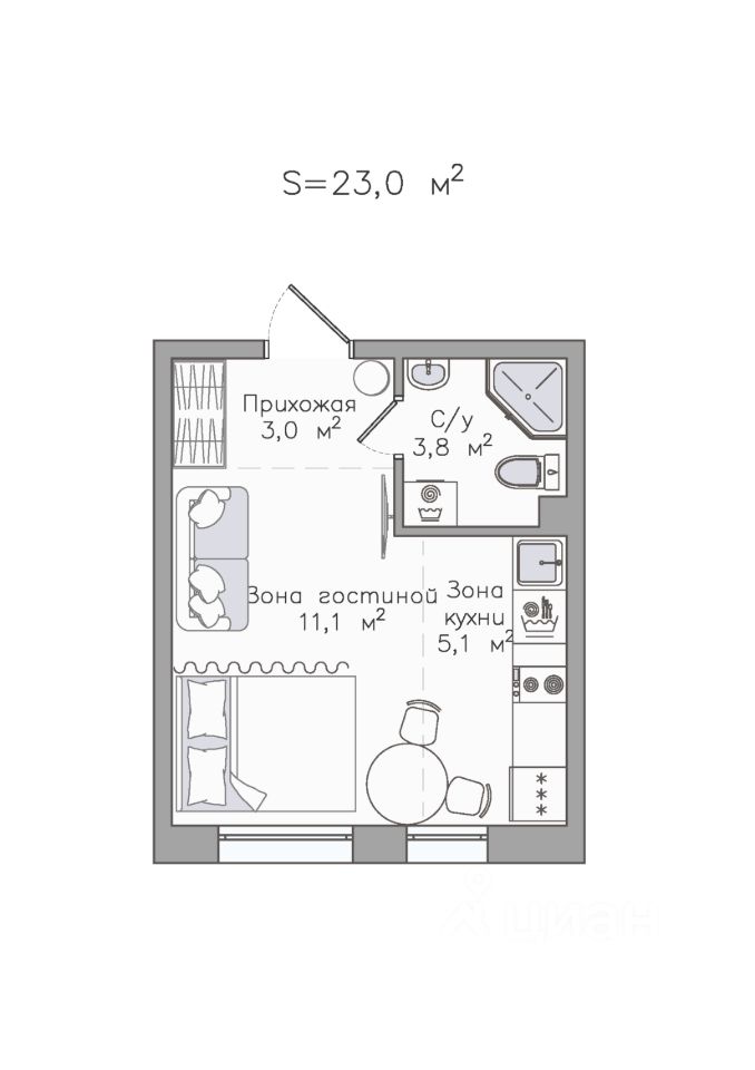 23 м²