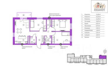 Три просторные комнаты и Кухня-гостиная.