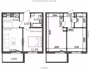 Продаётся 2-комнатная квартира в строящемся доме (Дом 4), срок сдачи: IV-кв. 2026, общей площадью 43.34 кв.м., на 3 этаже.